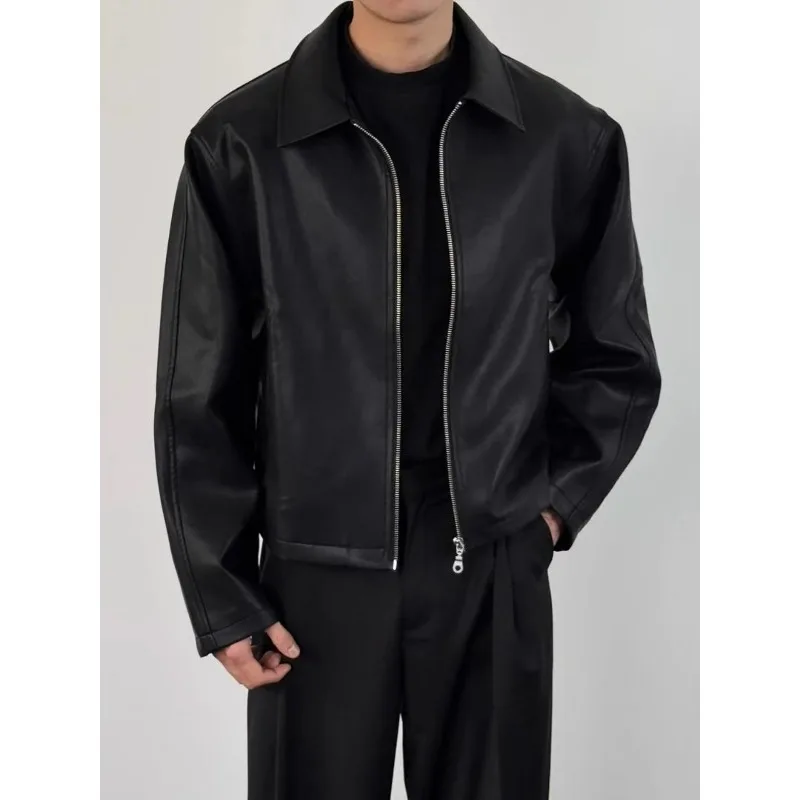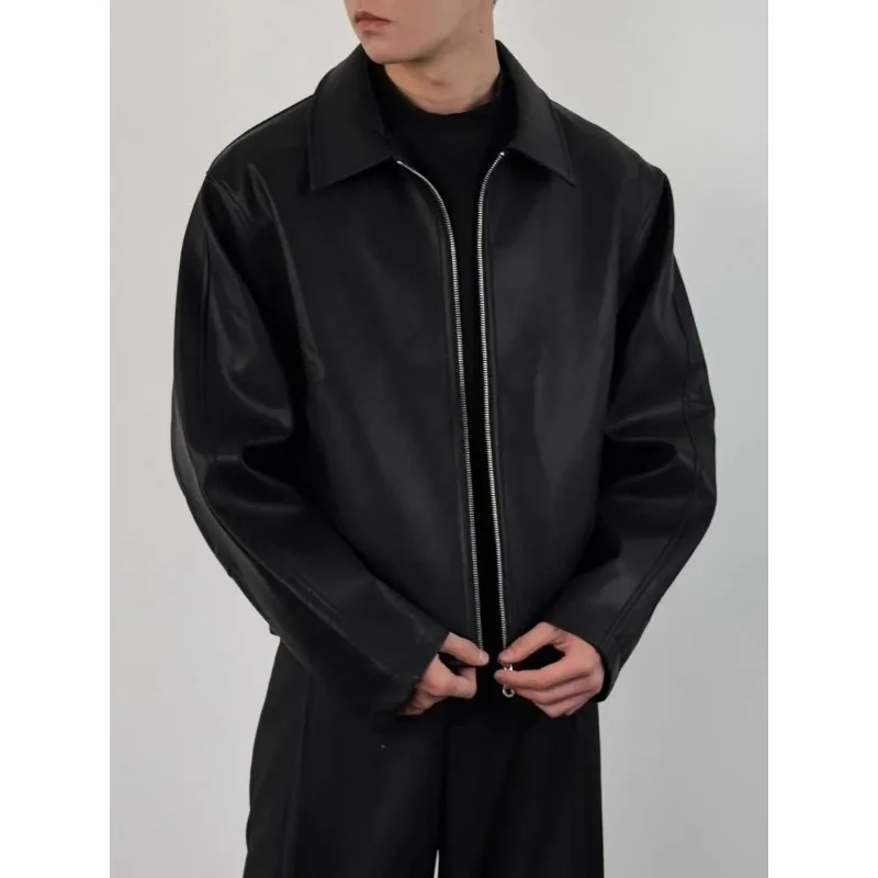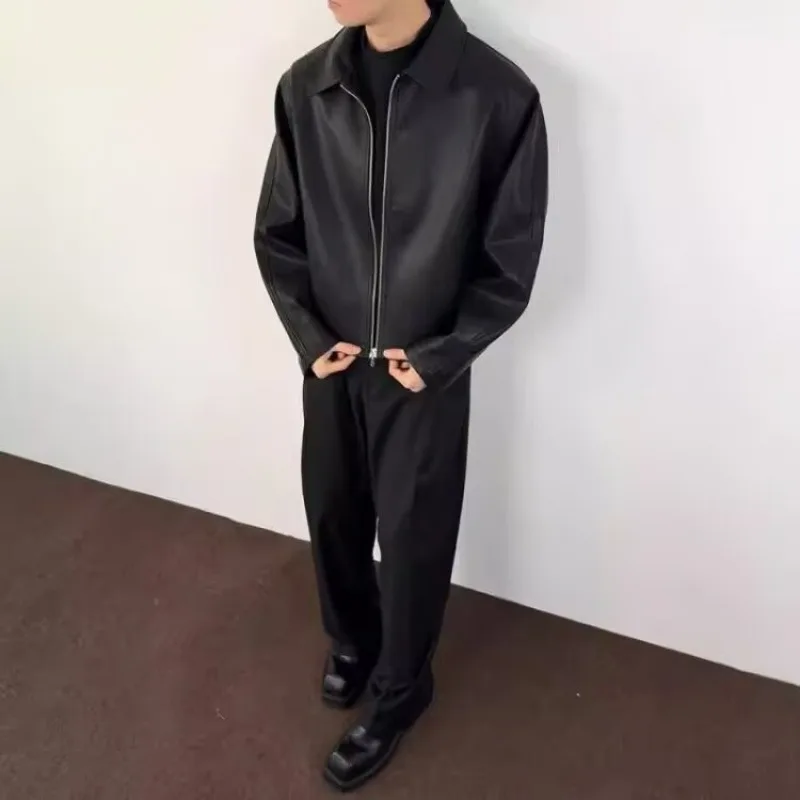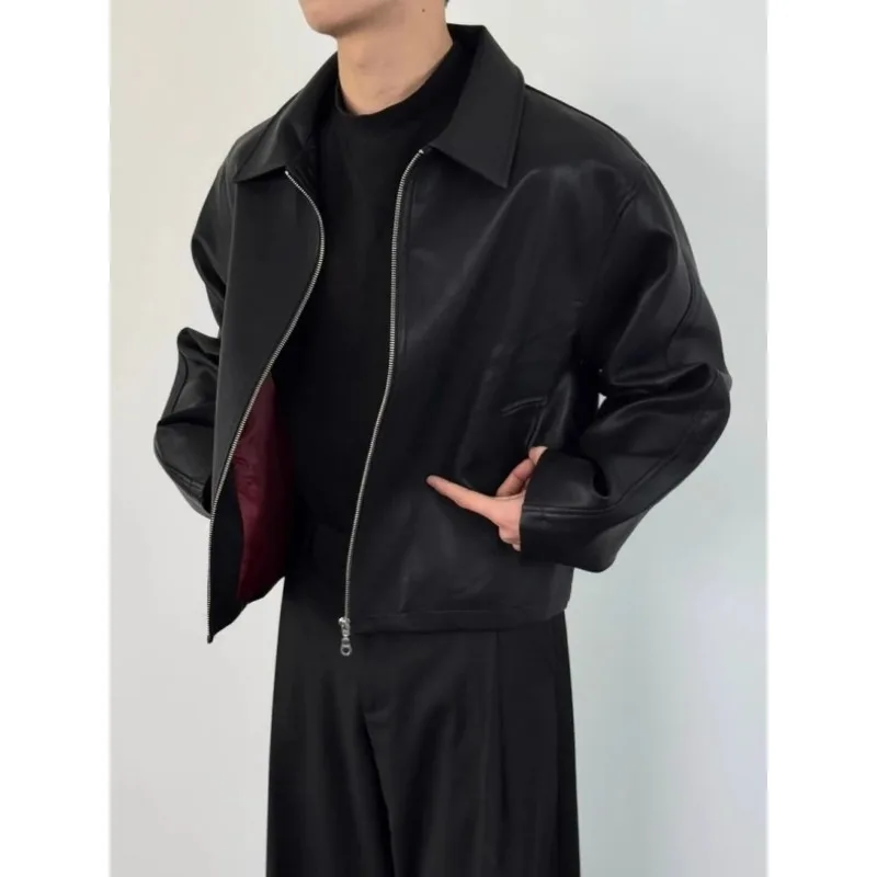 Men Leather Jacket Spring Autumn American High Street Turn Down Collar Male Oute
