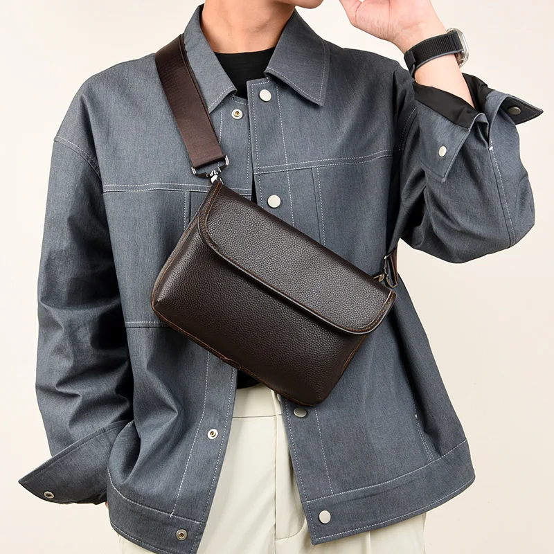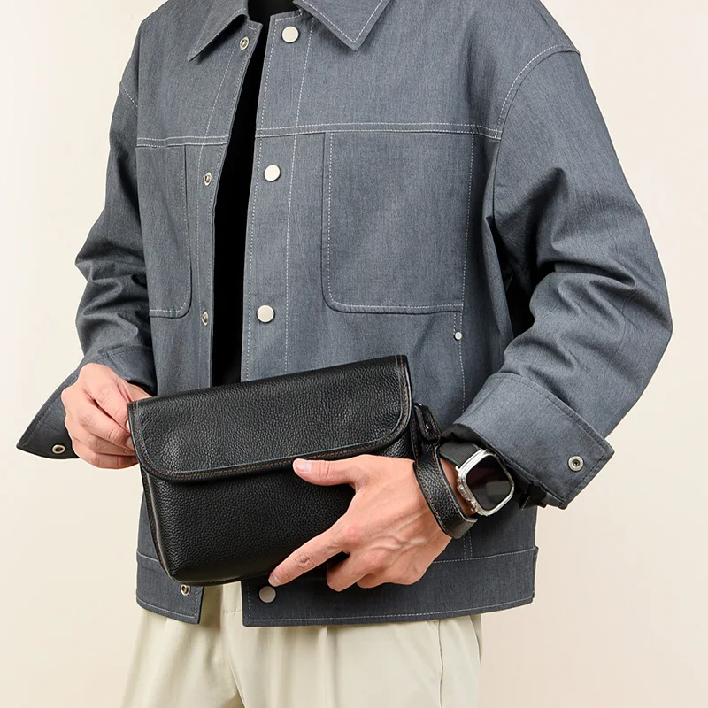 Solid color genuine leather cowhide Men's shoulder bag crossbody bag bags for me